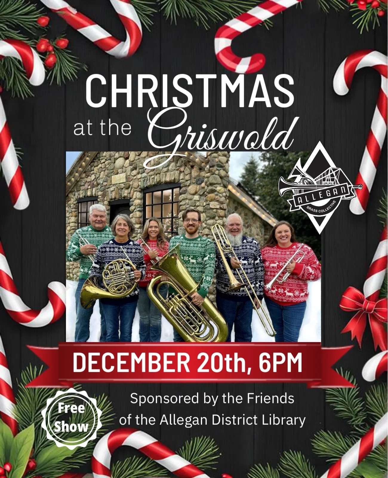 Get in the holiday cheer as the Allegan Brass Collective along with the Allegan Community Players bring you a joyful Christmas concert filled with music, song, and laughter! Returning for their 8th year, the Allegan Brass Collective will fill the Griswold with songs of the season. Fun for the whole family!